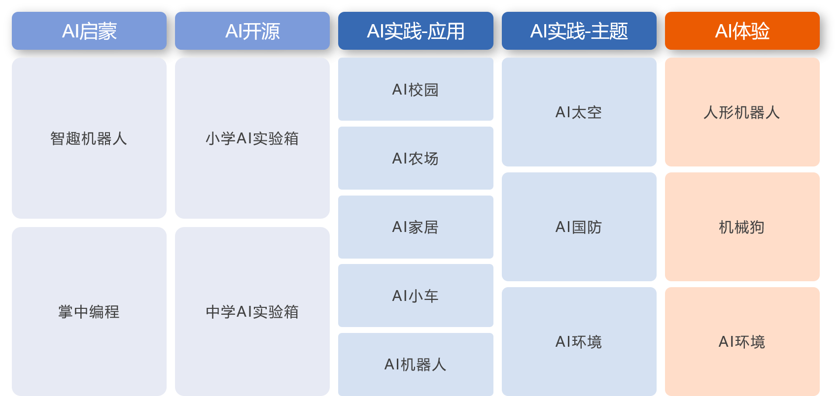 硬件+软件+课程三位一体,降低技术应用门槛,适配K12至高校需求, 一站式AI&科创教育产品方案